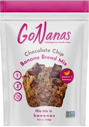 Mix your mashed bananas with oil of choice, milk of choice, and maple syrup or honey and stir in the GoNanas package of mix.
