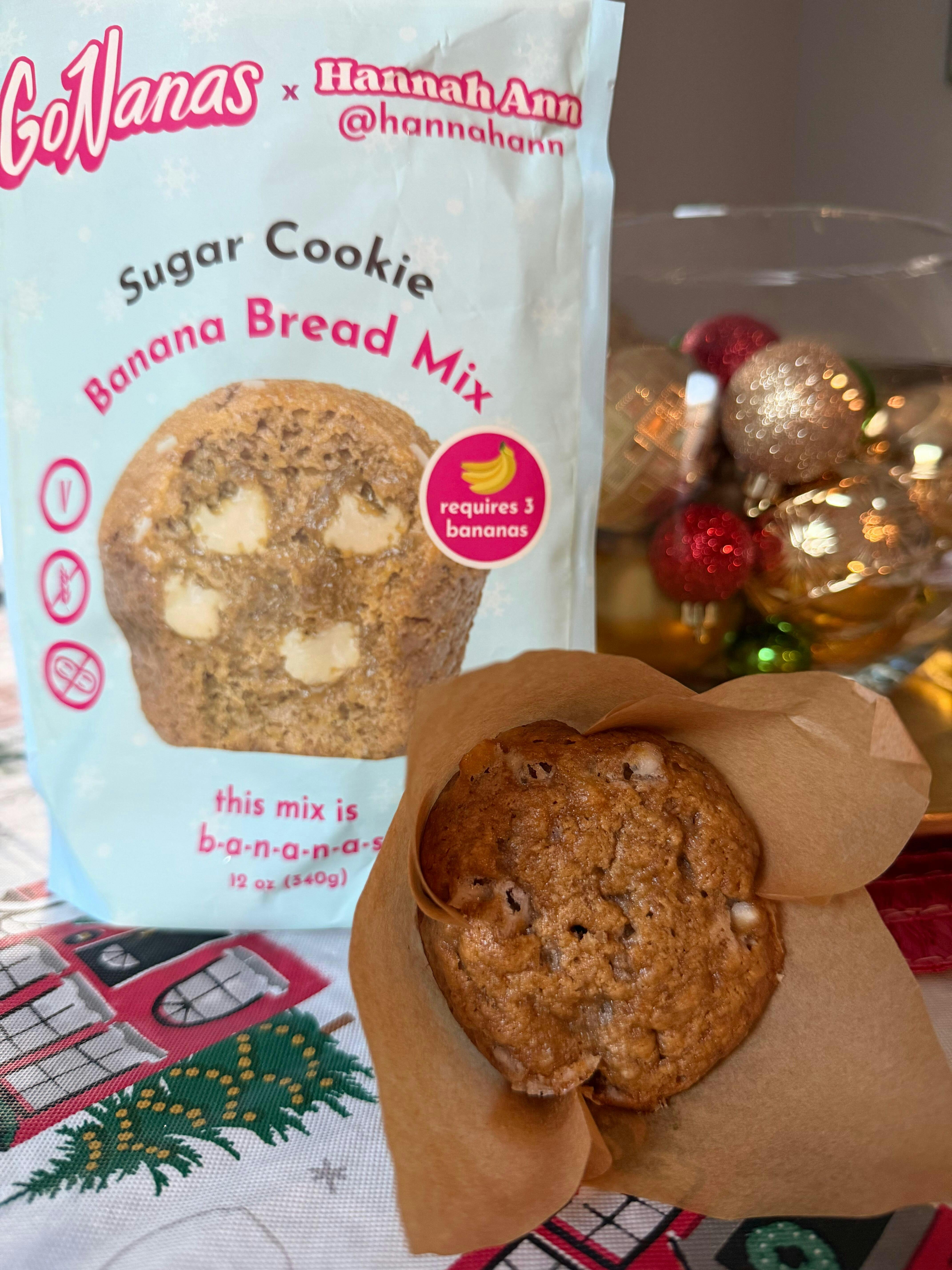 Our Sugar Cookie Banana Bread Mix made in collaboration with Hannah Ann just launched in time for the holidays! Made with vegan white chocolate chips, sprinkles, and vanilla it truly tastes like your favorite sugar cookie freshly baked into a warm banana bread.